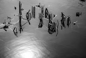 I samma stund som dessa tankar kom till mig och jag stod och blickade ut över vår regnskursblöta altan som bilderna kom till mig. Frömjölet från alla tallarna hade i vattnet på trädgårdsbordets glasskiva skapat en mosaik med olika mönster. Titta där, ett ansikte! Ett till! Nu fanns det inget att vänta på, det var bara att greppa kameran, snöra på sig skorna och ge sig ut på altanen för att skapa.